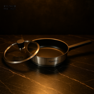 The Alpenberg Stainless Steel Fry Pan with Glass Lid (22x5 cm) combines durable stainless steel construction with a non-stick surface for efficient, easy cooking and cleaning. Its tempered glass lid allows you to monitor your food without losing heat or moisture, ensuring optimal cooking results. Designed for precision and longevity, this fry pan is ideal for expert chefs seeking reliable performance in everyday kitchen tasks.