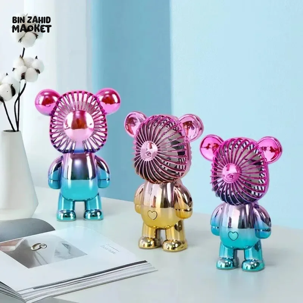CARTOON MINI VIOLENT BEAR FAN 3-SPEED USB PORTABLE RECHARGEABLE GRADIENT HANDHELD FAN