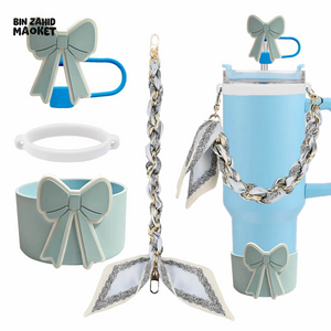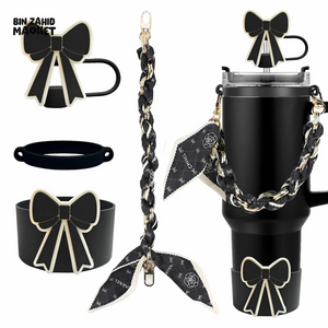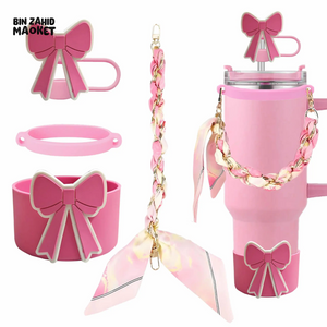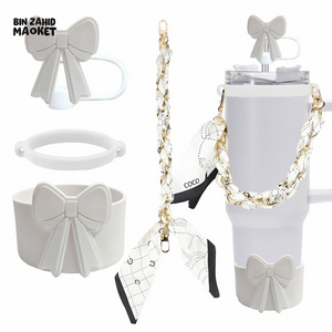 Enhance your thermos cup with this expert-designed Cute Bow Accessory Set in vibrant orange. It includes a straw cover for hygiene, a silicone band for secure grip, a stylish chain for easy carrying, and a decorative scarf to personalize your cup. Each component combines functionality with charming aesthetics, making your drinkware both practical and uniquely yours.