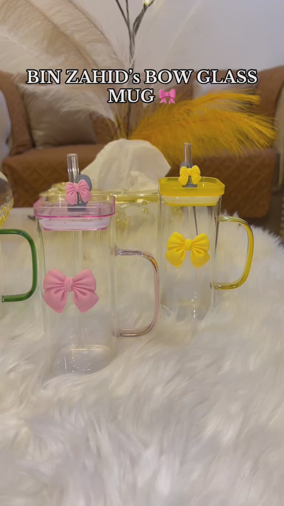 GLASSLUX BOW TUMBLER MUG WITH STRAW - 400ML
