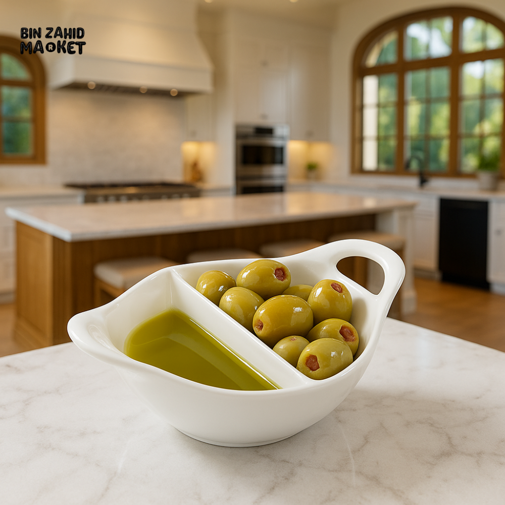 DUAL COMPARTMENT CERAMIC OLIVE & OIL SERVING DISH – LUXURY KITCHEN STYLE