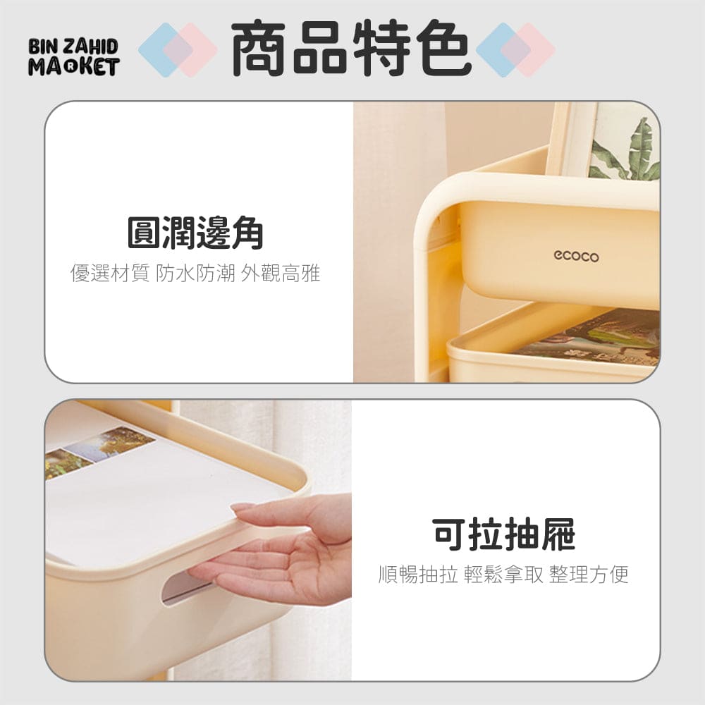 ECOCO SNACK STORAGE RACK – 2-TIER MULTIFUNCTIONAL KITCHEN STORAGE TROLLEY WITH DRAWERS UNDER-DESK ORGANIZER & ROLLING CART SHELF