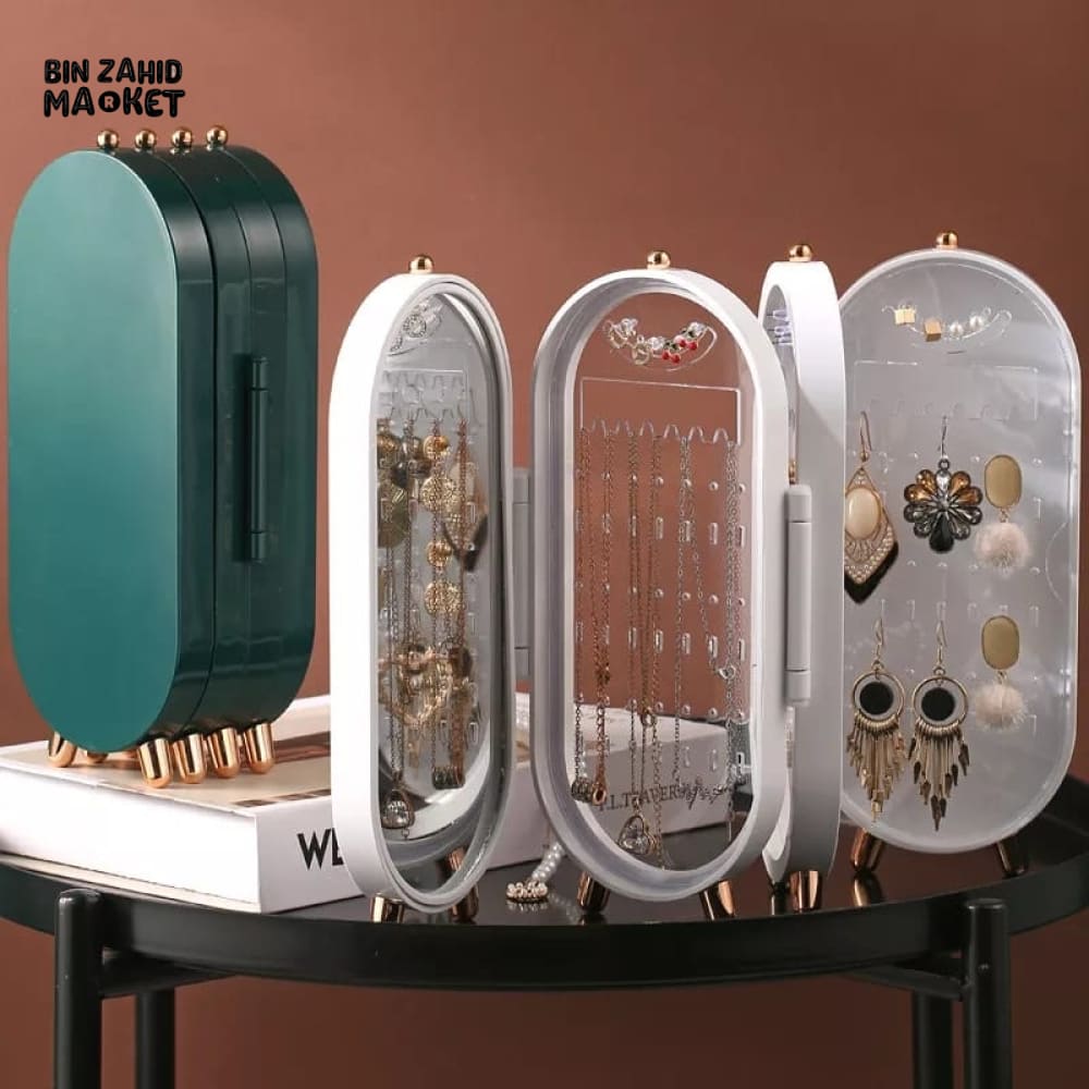 Efficiently organize and store your jewelry with our Foldable Desktop Jewelry Organizer. Its compact and foldable design maximizes space and keeps your jewelry easily accessible. The perfect solution for clutter-free and effortless jewelry storage.