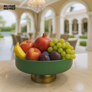 GOLDEN FOOTED SERVING BOWL 8 INCH – LUXURY FRUIT & SNACK DISPLAY CENTERPIECE - GREEN