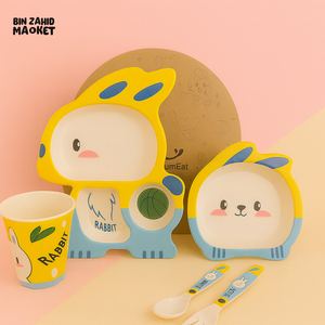 5 Pcs Cartoon Animals Melamine Children Baby Kids Dinner Plate Bowl Cup Spoon Fork Set Solid Food Feeding Tableware Cutlery