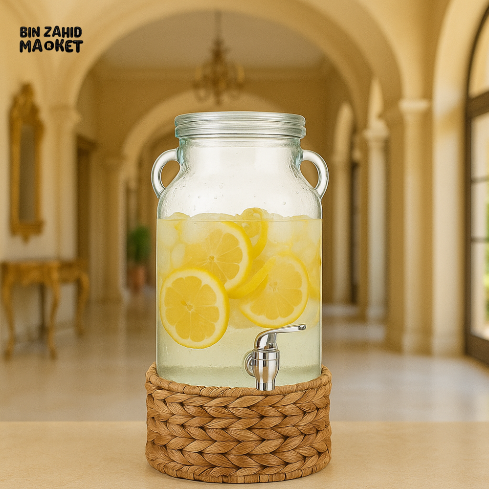 LUXURY 3100ML GLASS BEVERAGE DISPENSER WITH TAP – VILLA STYLE LEMON WATER JAR