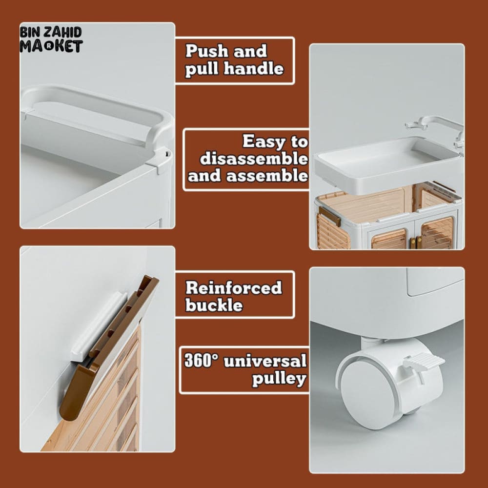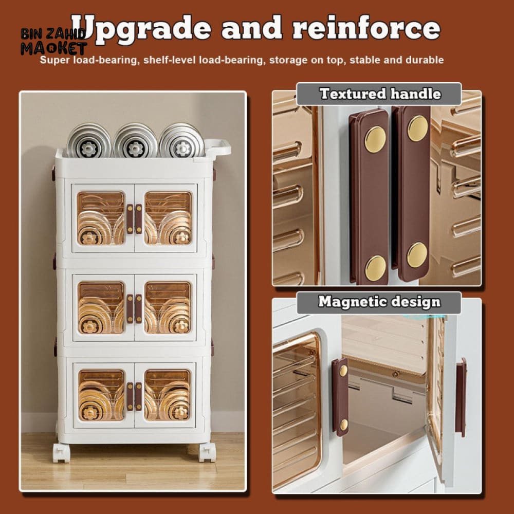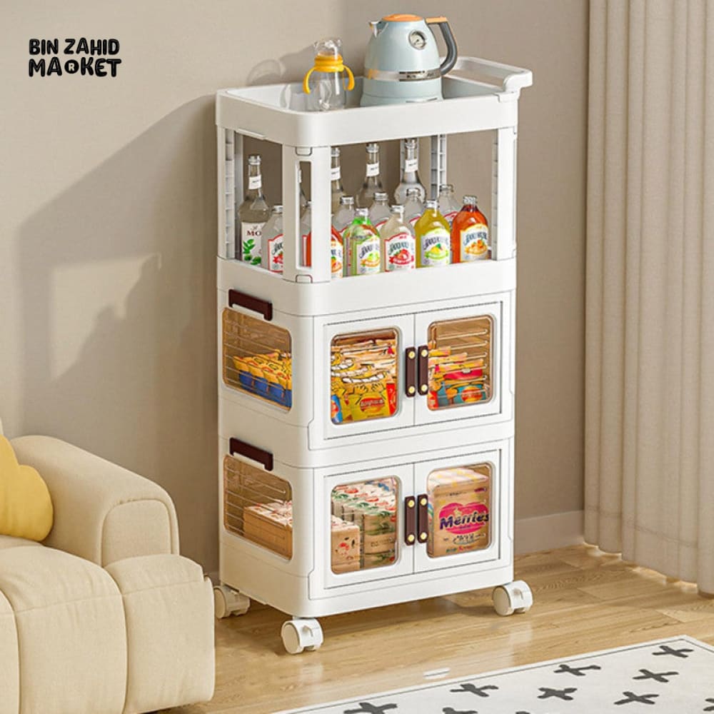 MODERN 3-TIERS STORAGE CABINET WITH MOVEABLE WHEELS