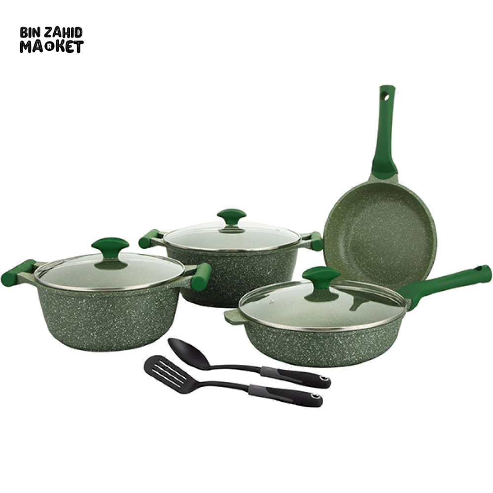 Prestige Essentials 9pcs Pots and Pans Set | Nonstick Cookware Sets | Granite Pots Set | Kitchen Induction Pots and Pans Cooking Sets | Pan Sets for Cooking - Green