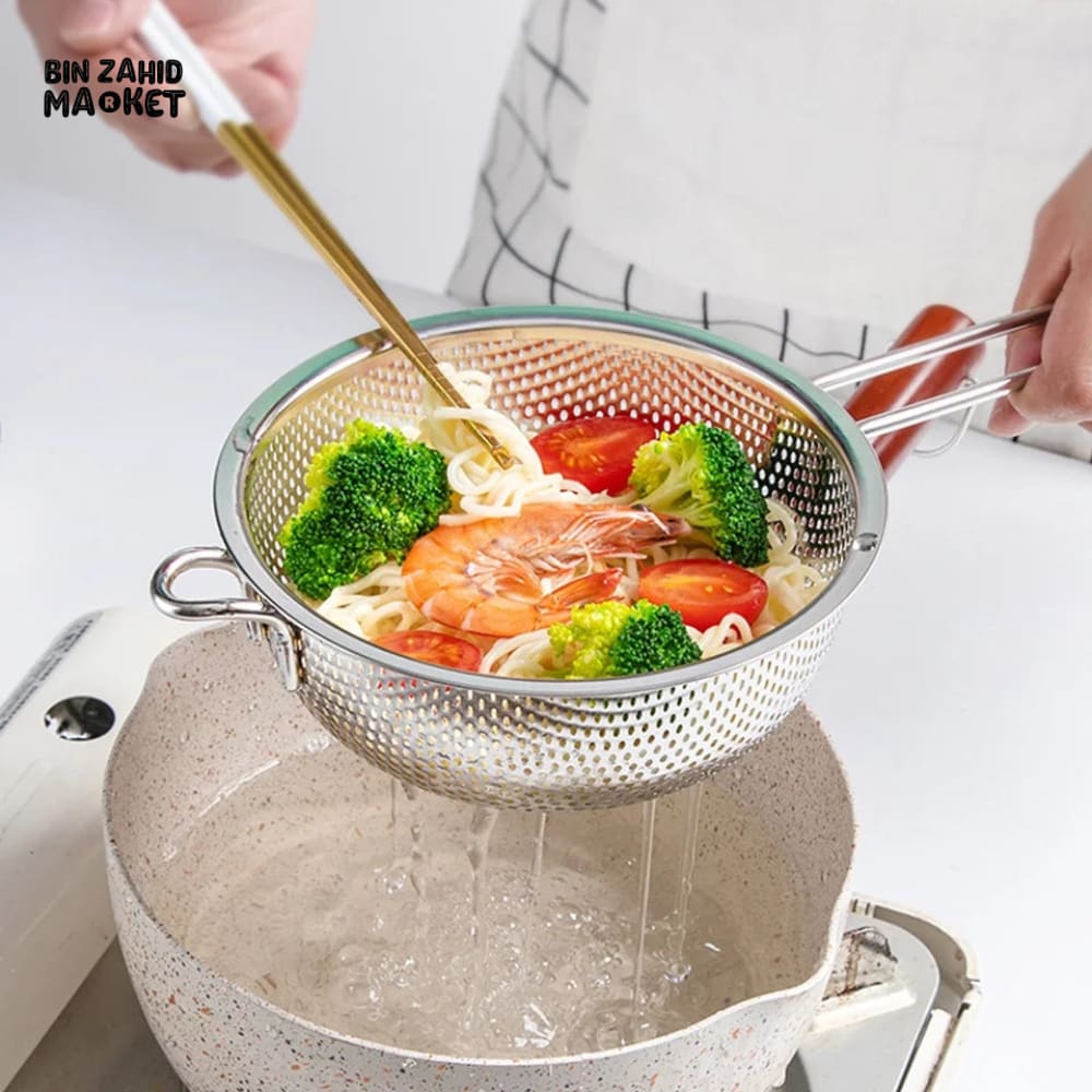 Efficiently strain rice with ease using our Stainless Steel Rice Strainer with Handle. Made from durable stainless steel, this strainer is designed for long-lasting use. The ergonomic handle provides a comfortable grip and makes straining a breeze. Upgrade your cooking experience with this essential kitchen tool.