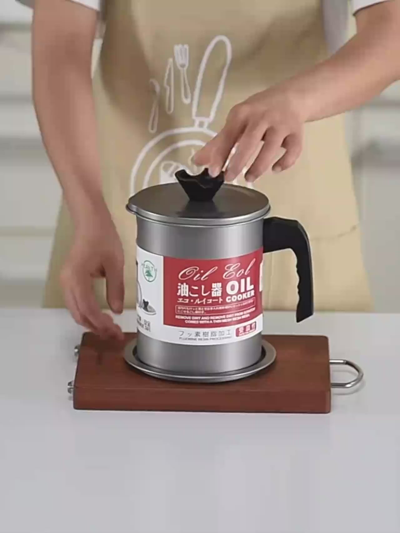 STAINLESS STEEL OIL FILTER POT – LARGE CAPACITY GREASE SEPARATOR WITH LID - 1.4 L