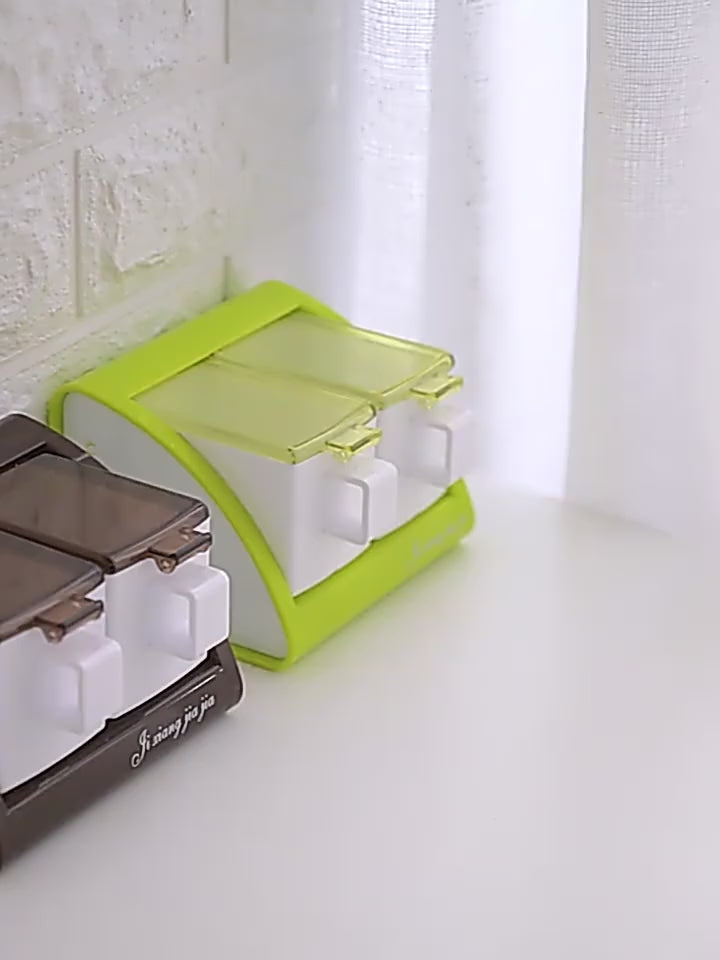 WALL-MOUNTED 4-COMPARTMENT SEASONING POT SET KITCHEN SALT & SPICE STORAGE BOXES