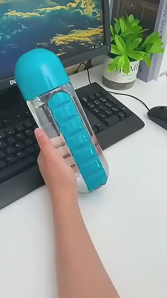 This innovative water bottle combines hydration and medication management in one compact design. Featuring a built-in weekly pill organizer, it helps you keep track of your daily supplements with ease. The detachable cup adds convenience for drinking on the go, making it ideal for travel or busy lifestyles. Crafted for practicality and efficiency, this 2-in-1 container ensures you stay organized and hydrated wherever you are.